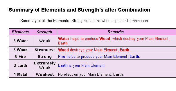 11. Determining a person's element strength is extremely important as a weak earth is different from a strong earth. In our reports, we go all out to provide all the necessary analysis to determine this as we understand the importance and impact of having determined the correct element strength.