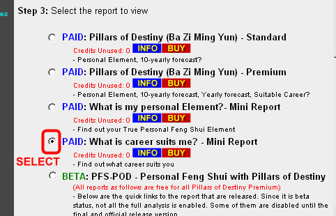 • Select the PAID: Pillars of Destiny (Ba Zi Ming Yun) - Standard