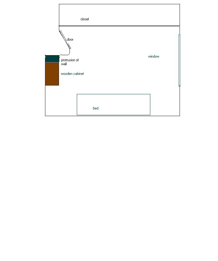 I'D LOVE YOU TO CLEAR MY DOUBTS UP.MY BEDROOM HAS A WALL PROTRUSION THAT CAN BE SEEN AS A POISON ARROW ( SEE ATTACH DRAWINGS).BESIDES THAT MY BEDROOM HAS SLOPING CEILING ( I HAVE PLACED TWO CHINESE FLUTES ON THE WALL) MY BED IS AGAINST THE SMALLEST WALL . BECAUSE PART OF MY BEDROOM IS IN THE EAST I'VE PLACED A METAL CLOCK AND