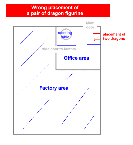 5. Recently, two months ago, I went for a Feng Shui audit. Prior to my visit, a Feng Shui practitioner advised; this client to place two dragon figurines with a crystal in the mouth of the dragon facing into a wall facing the meeting table.